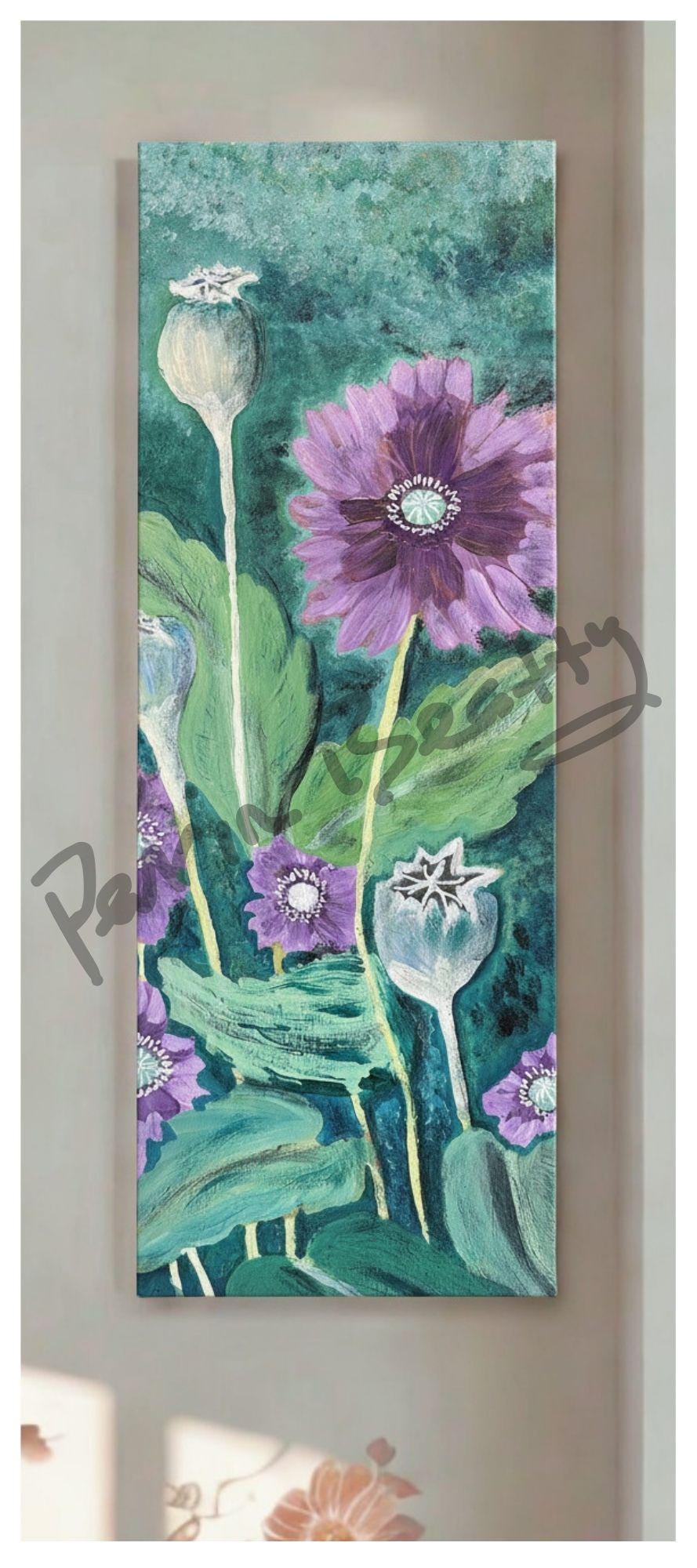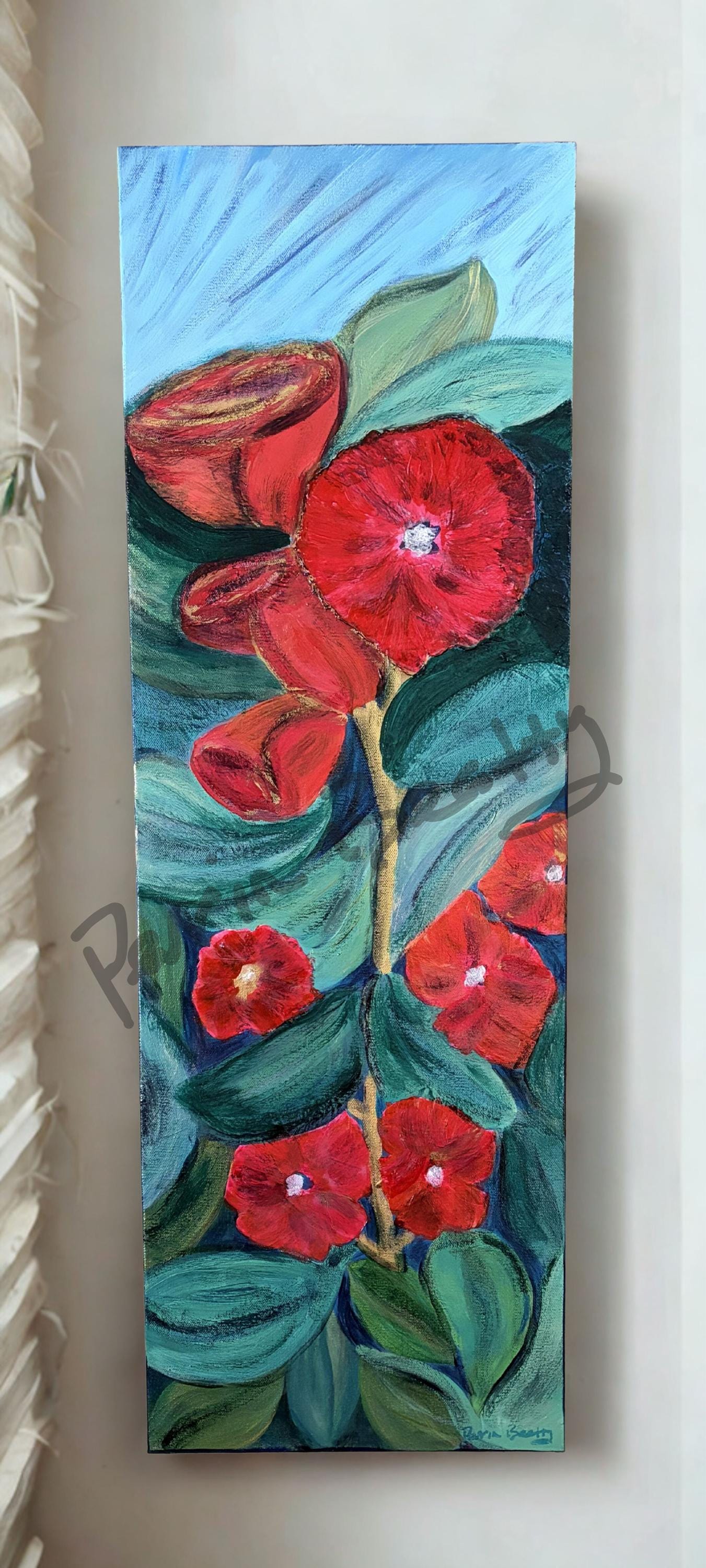 Poppies, Acrylic on Birch Panel, 8 x 24 inches, $100.