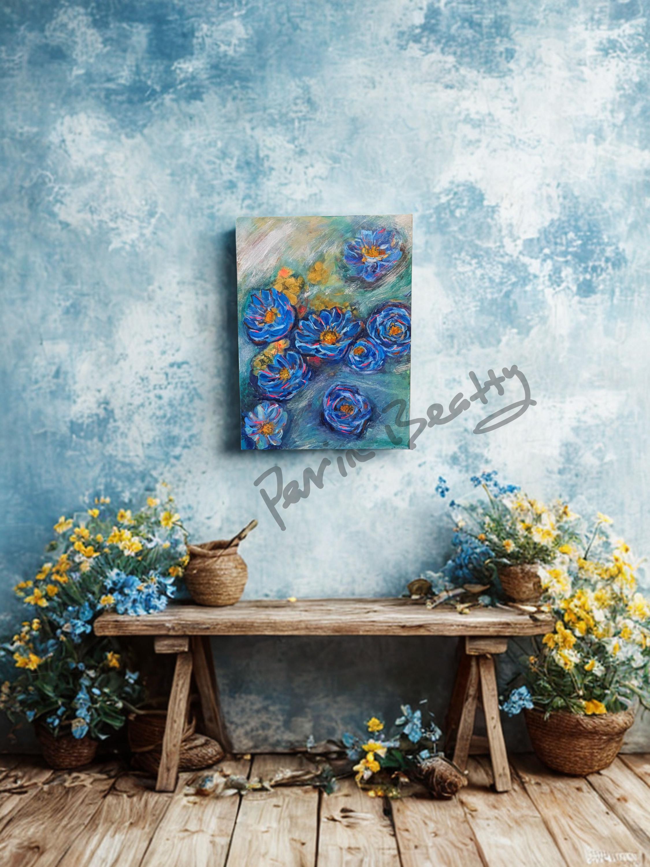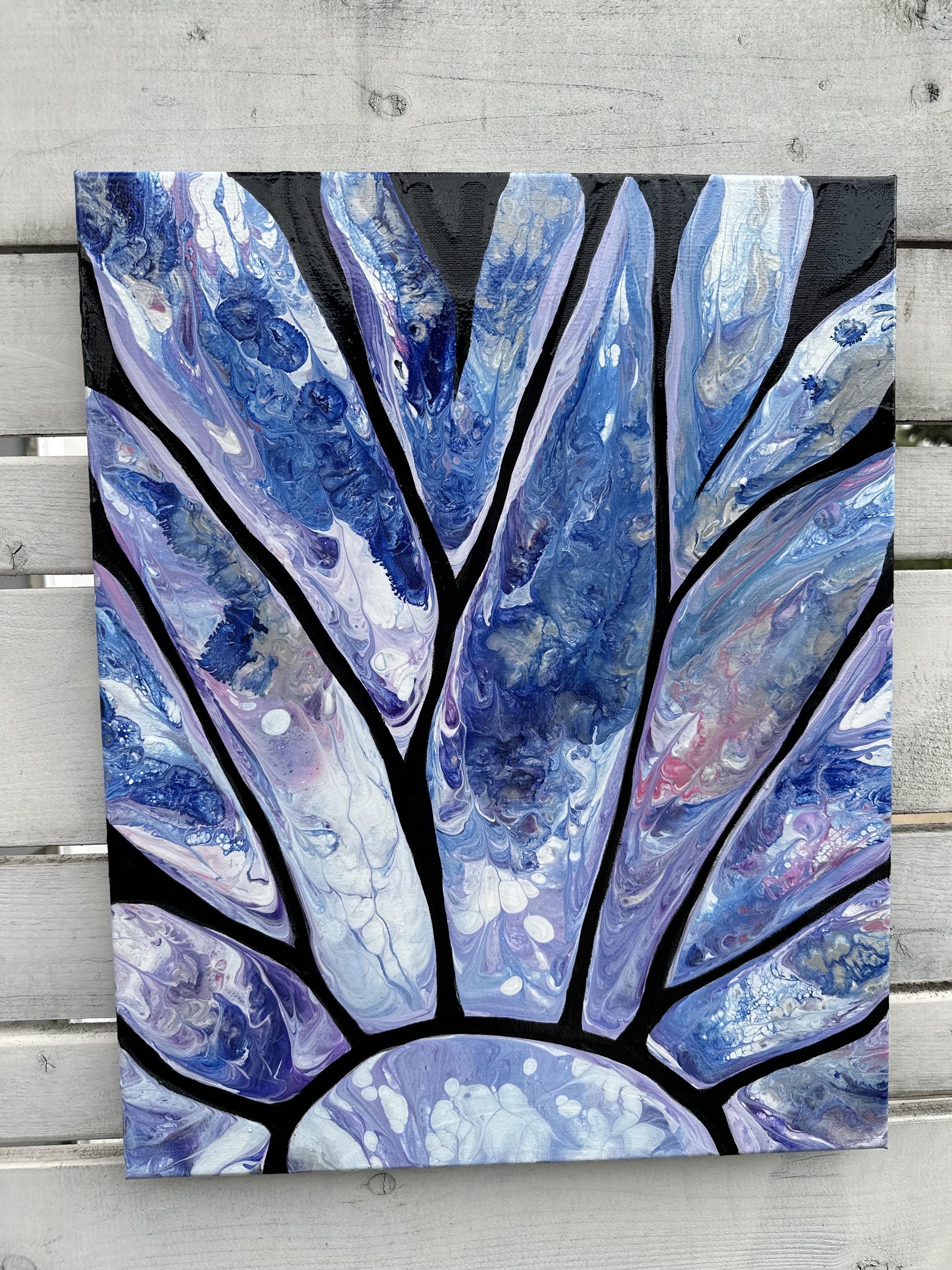 Blue Daisy, Acrylic on Canvas, 20 x 16 x 0.5 inches, $150.