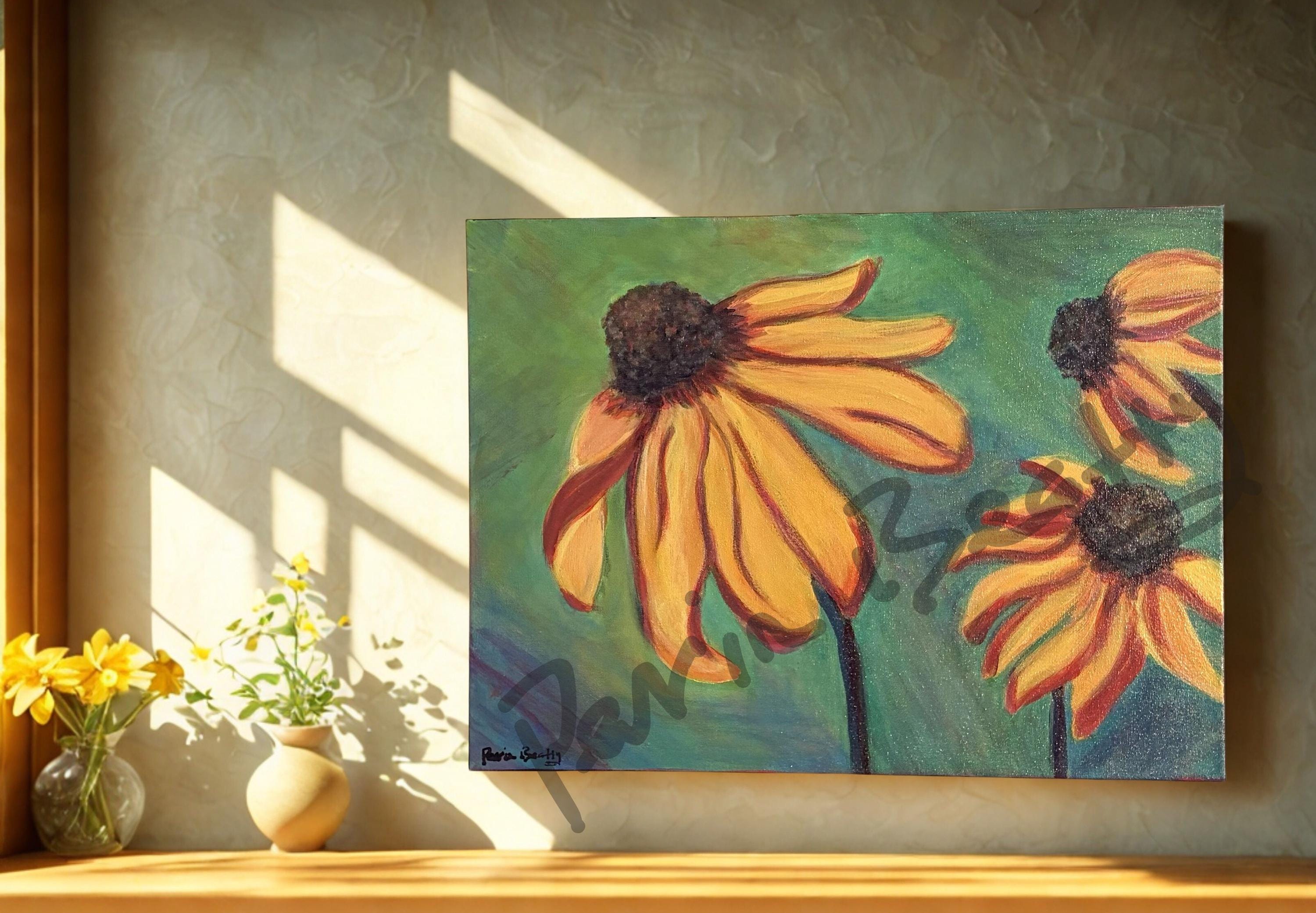 Hopeful Susans, Acrylic on Canvas, 18 x 24 x 1.5 inches, $350.