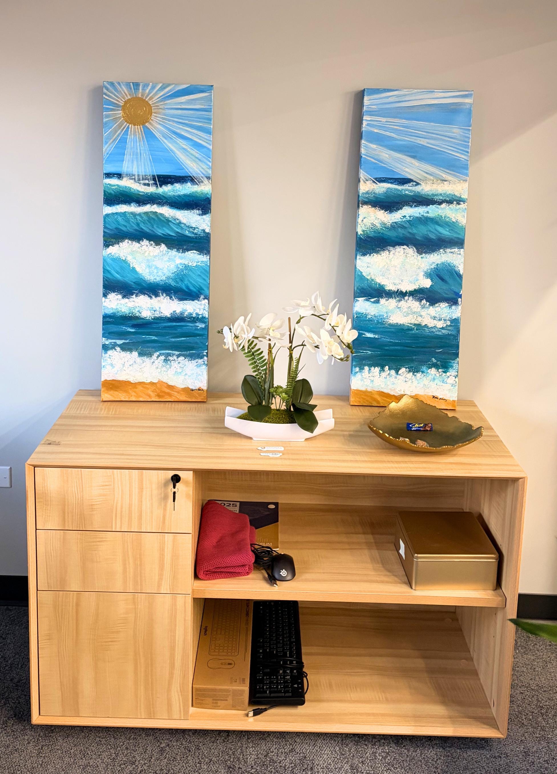 Tofino Waves I and II, Acrylic on Canvas, 12 x 48 x 1.5 inches, COMMISSIONED and SOLD.