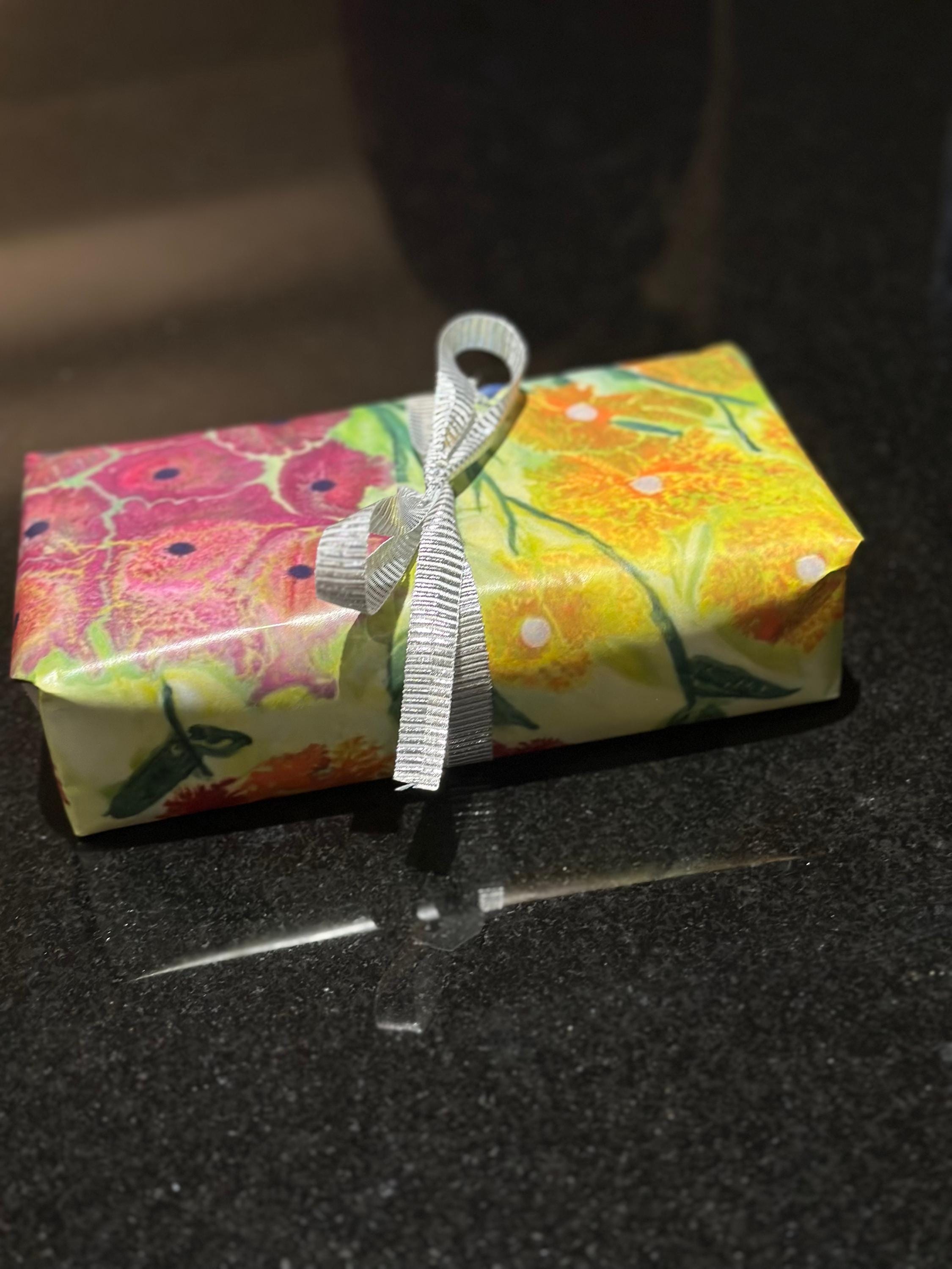 The wrapping paper is printed in Canada and shipped by me. I carefully fold the sheets, place them in a cello sleeve, and ship them in a reinforced envelope to you.